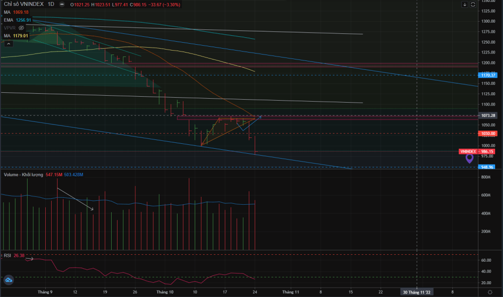 Kết thúc phiên ngày hôm nay, VNINDEX tiếp tục giảm sấp mặt sau phiên thứ 6 vừa rồi. Tổng 2 phiên thứ 6 và hôm nay đã lấy đi của index 70p. Thị trường tiếp tục giảm với một biên độ khủng khiếp 3.3%. Lên thang bộ, xuống thang máy đang thể hiện rõ hơn bao giờ hết.