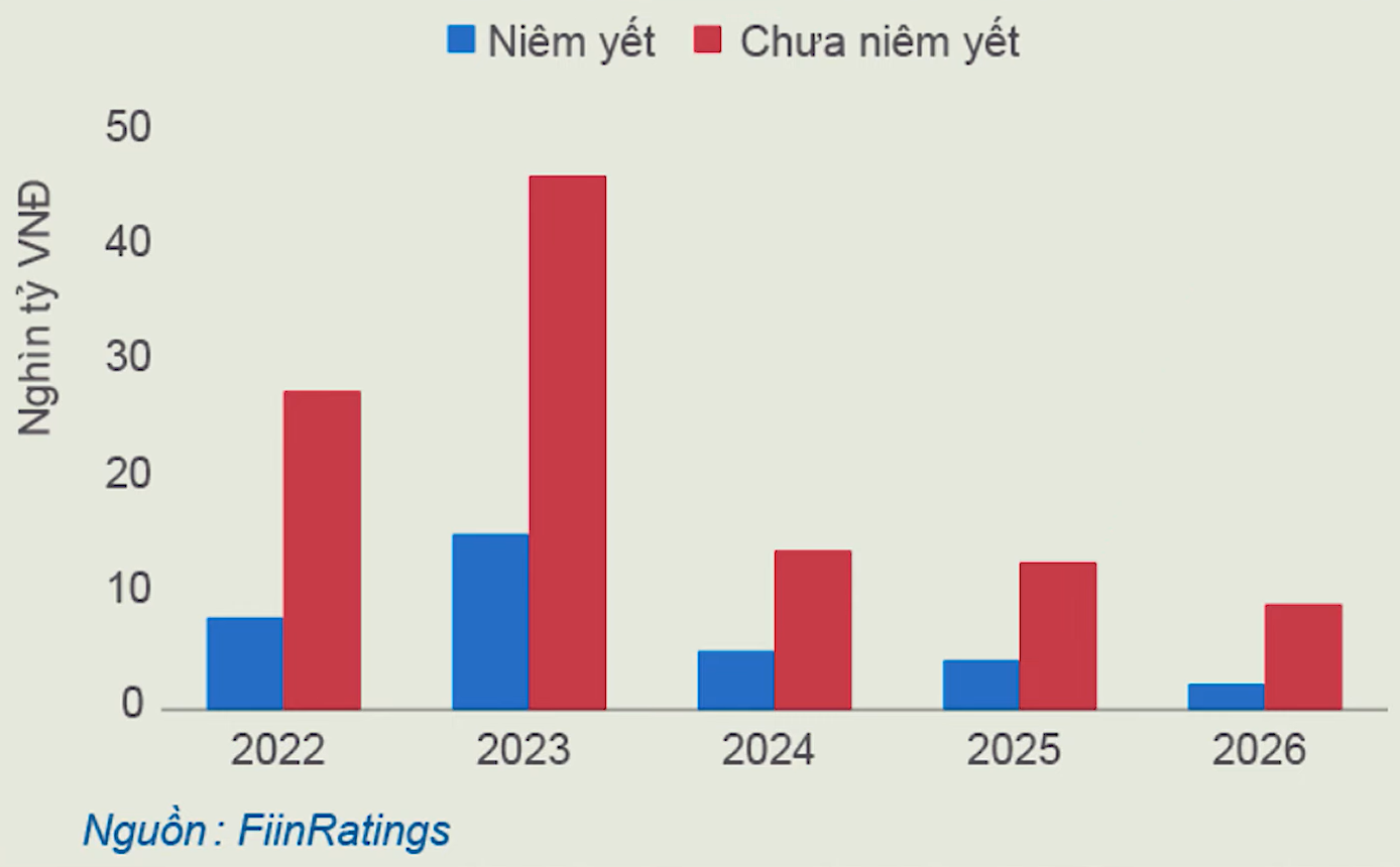 – Áp lực đáo hạn tăng mạnh chủ yếu đến từ các DN BĐS chưa niêm yết