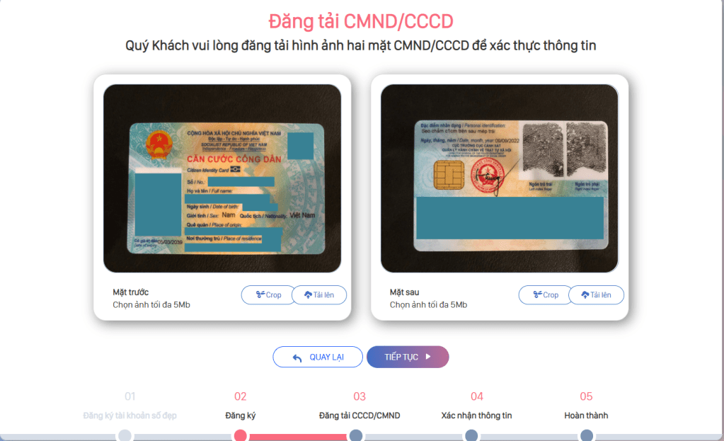 Bước 2: Đăng tải CMND/ CCCD