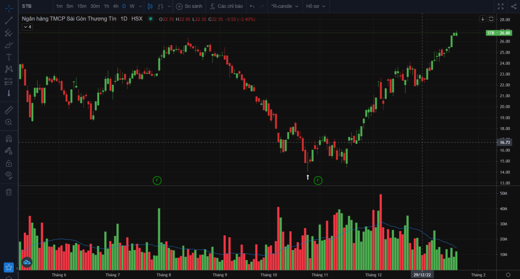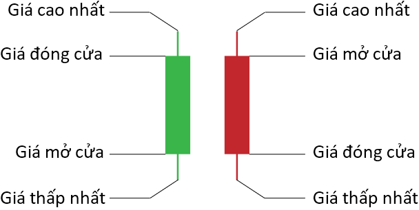 Một nến sẽ bao gồm 4 thành phần: Giá mở cửa, giá đóng cửa, giá thấp nhất, giá cao nhất. Ở thị trường CKVN thì giá mở cửa sẽ được xác định sau phiên ATO, và giá đóng cửa sẽ được xác định sau phiên ATC.