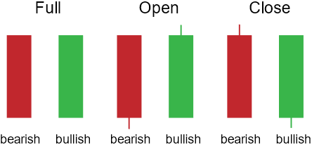- Thể hiện cho lực mua (nếu là nến xanh) áp đảo hoàn toàn so với lực bán trong phiên. Nếu là nến đỏ thể hiện cho phe bán áp đảo hoàn toàn phe mua.