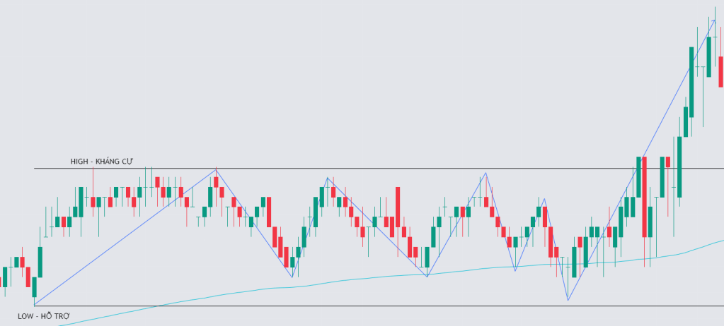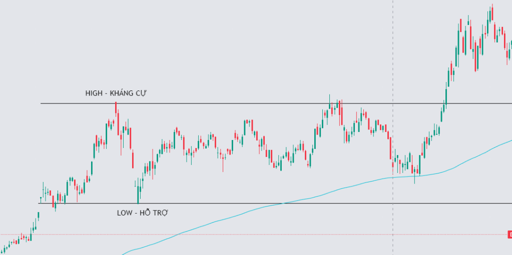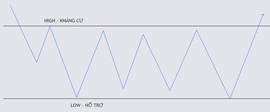 - Thị trường đi ngang, hay còn gọi là sideway market / consolidation / hoặc tích lũy