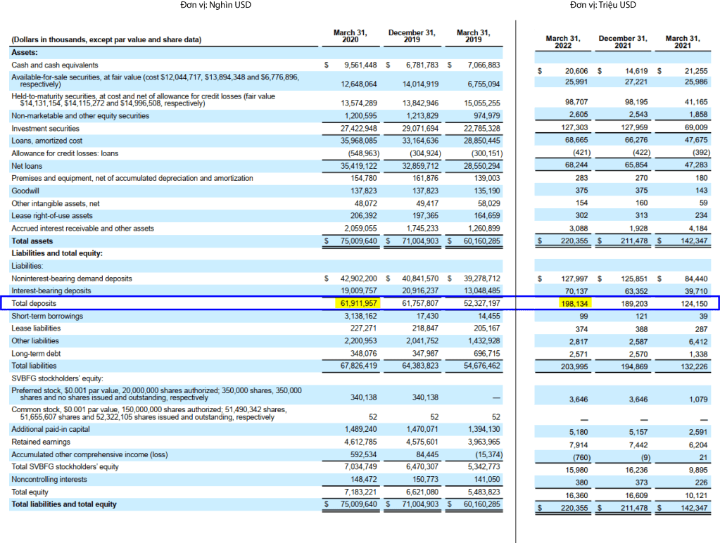Silicon Valley Bank là nhà băng đứng thứ 16 của Mỹ (trước khi sụp đổ diễn ra), công ty mẹ của SVB là SVB Financials. Ở SVB Financials có rất nhiều khách hàng là những công ty khởi nghiệp và các quỹ đầu tư mạo hiểm. Trong thời kỳ đại dịch, lúc mà tiền rẻ tràn lan, những khách hàng này tạo ra rất nhiều tiền và dẫn tới lượng tiền mặt được gửi vào SVB tăng đột biến. SVB đã kết thúc quý đầu tiên năm 2020 với tổng tiền gửi chỉ hơn 60 tỷ USD, nhưng con số này đã tăng vọt lên gần 200 tỷ USD vào cuối quý đầu tiên của 2022.