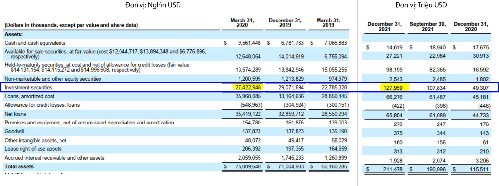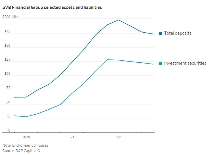 Với lượng tiền dồi dào được gửi vào, SVB đã mua hàng chục tỷ tài sản được coi là an toàn như trái phiếu chính phủ, hay các chứng khoán thế chấp được hậu thuẫn bởi chính phủ. Danh mục đầu tư chứng khoán của SVB đã tăng từ khoảng 27 tỷ USD trong quý đầu tiên của 2020 lên khoảng 128 tỷ USD vào cuối 2021.