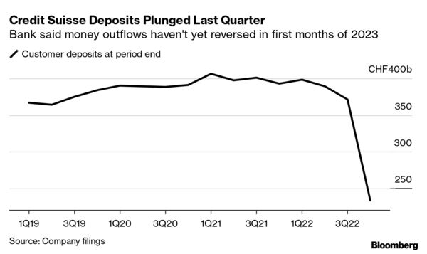 Lượng tiền gửi tại Credit Suisse đã sụt giảm rất mạnh so với các quý trước đó.
