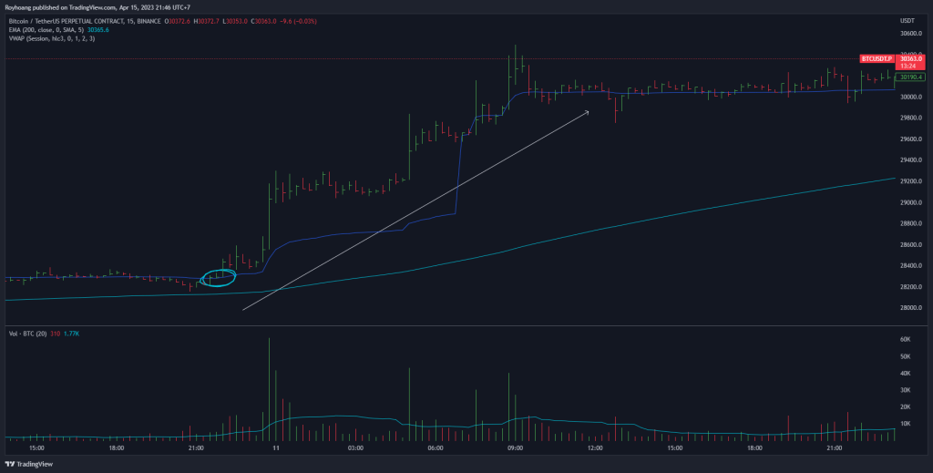 Trader đang tìm kiếm điểm mua vào có thể chờ đợi giá tăng phá qua VWAP hay điểm test lại VWAP sau đó thực hiện lệnh mua vào.