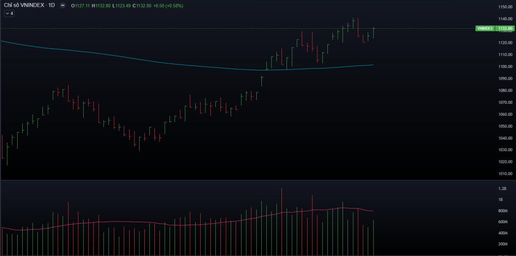 Một phiên khá tích cực khi sắc xanh lan tỏa ở hầu hết các nhóm ngành. Tổng giá trị giao dịch trên VNI đạt 14.6k tỷ, một phiên với khối lượng khá ổn.