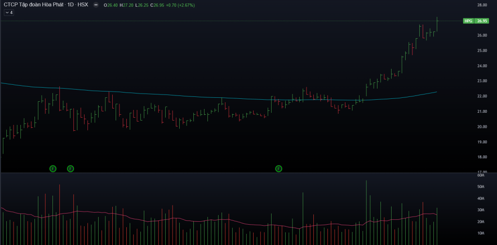 Trụ VCB đóng vai trò lớn trong điểm số của VNI khi có lúc tăng hơn 2%, góp 2 điểm cho VNINDEX. HPG vẫn rất khỏe, và rất xứng đáng thành trụ dẫn cho VNI giai đoạn này. Tây vẫn liên tục mua vào HPG, và trong một tháng trở lại đây giá trị mua ròng từ Tây là hơn 1700 tỷ. Dự kiến lò cao cuối cùng của HPG ở khu liên hợp Dung Quất sẽ được mở lại trong tháng 7 này và 7 lò cao của HPG sẽ được vận hành đầy đủ vào cuối tháng. Chi phí để mở lại lò cao trong khoảng 30-40 tỷ.