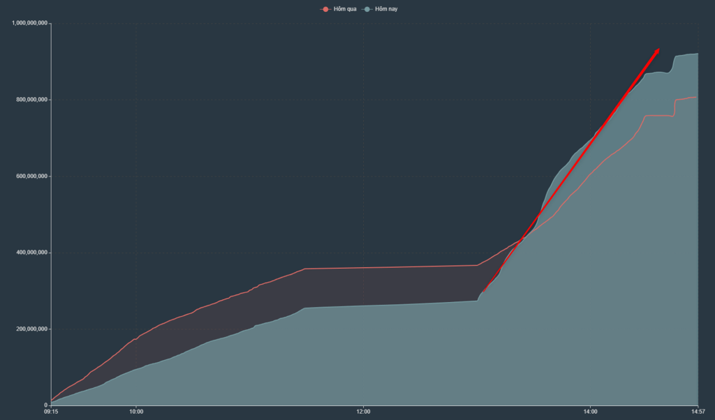 Phiên hôm nay thấy được một lực chốt lời trên diện rộng xảy ra ở nhiều nhóm ngành. Nếu phiên sáng chỉ mua vào với khối lượng chán nản, thì phiên chiều khối lượng bán áp đảo hẳn. Trên VNI có trên 70% các mã giảm giá, và khá nhiều mã giảm trên 2%.