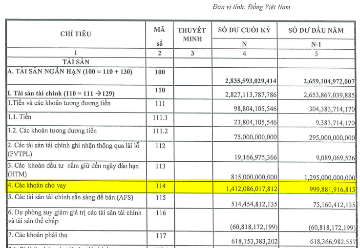 So với cuối thời điểm năm 2022 thì khoản cho vay margin của AGR tăng từ 960 tỷ lên 1343 tỷ (+40% YoY), tính thêm khoản cho vay ứng tiền trước thì tổng các khoản cho vay ngắn hạn đạt 1,412 tỷ chiếm 46% tổng tài sản.