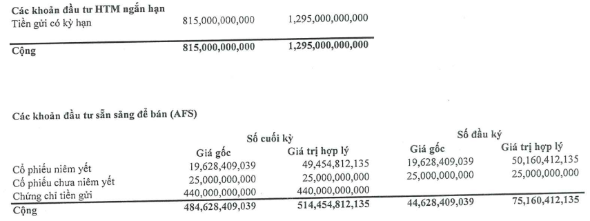 Các khoản AFS tăng từ 75.2 tỷ lên 514.5 tỷ, tập trung ở chứng chỉ tiền gửi, còn lại là cổ phiếu niêm yết/ chưa niêm yết chỉ chiếm rất ít.