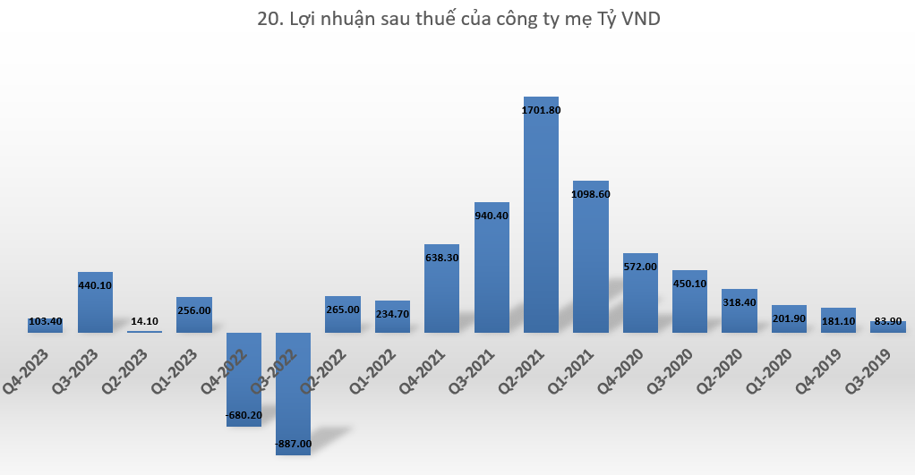 – Lợi nhuận sau thuế (LNST) đạt 103.4 tỷ, trong khi Q4 năm ngoái âm 680.2 tỷ. Biên lãi sau thuế Q4 đạt 1.14%