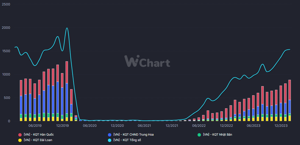 Lượng khách du lịch quốc tế đến Việt Nam tháng 2/2024 đạt trên 1,53 triệu lượt khách, tăng 1,3% so với tháng 1/2024, tăng 64,1% so với cùng kỳ năm 2023. Mức tăng này phần lớn là từ khách du lịch Hàn Quốc và Trung Quốc. Lượng khách du lịch đang phục hồi dần dần về với con số trước khi xảy ra dịch Covid-19. Sự phục hồi của khách du lịch cũng sẽ là động lực cho tiêu dùng bán lẻ.