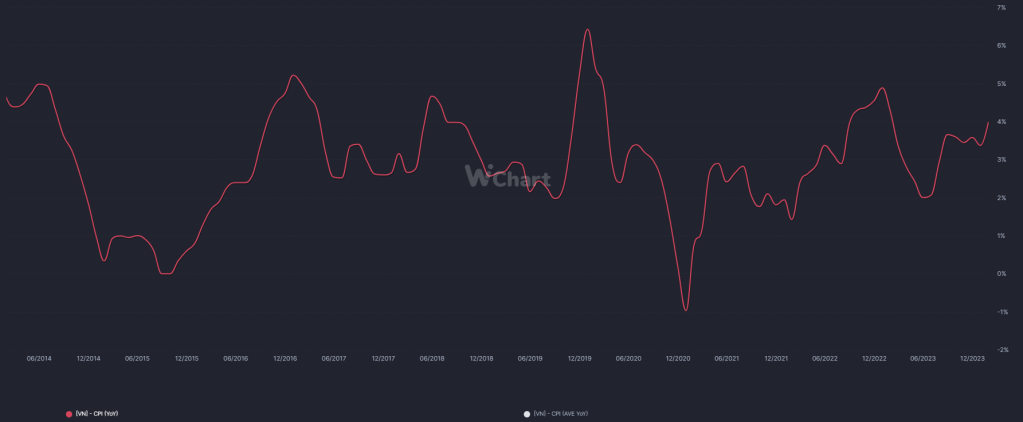 CPI 2 tháng đầu năm 2024 tăng 3.67% so với 2 tháng đầu năm ngoái (vẫn nằm trong mức cho phép 4.5%, giá cả tăng 1 phần cũng do dịp Tết). CPI tháng 1 tăng 3.37%, CPI tháng 2 tăng gần 4%. Khách quan mà nói mức tăng CPI trong 2 tháng đầu năm này là khá cao, cần thêm số liệu lạm phát trong những tháng tới để phán đoán cụ thể hơn.