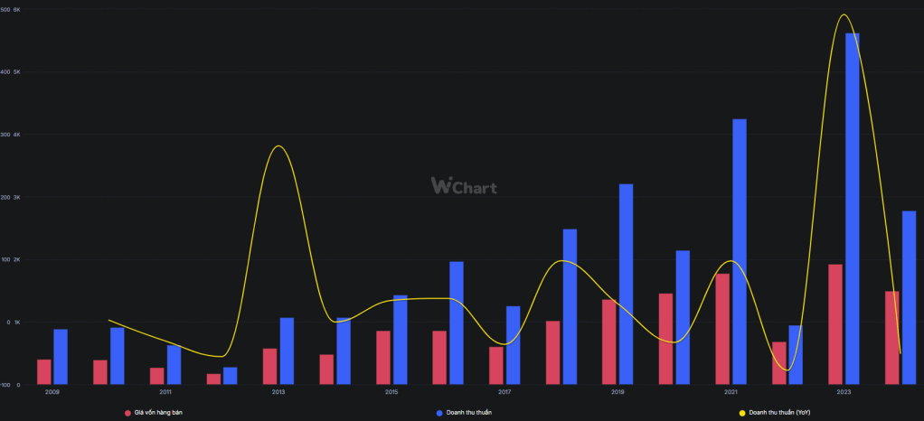 | Doanh thu thuần (tỷ VND) | ~3.300 | 2.154 | 4.224 | 950 | 5.618 | 2.776 |