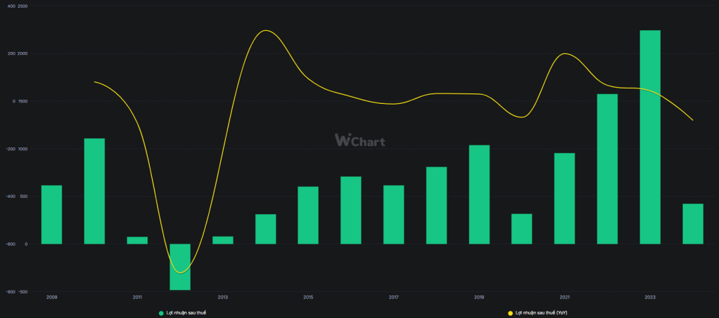 | Lợi nhuận sau thuế (tỷ VND) | ~1.000 | 297 | ~1.100 | 1.548 | 2.245 | 423 |